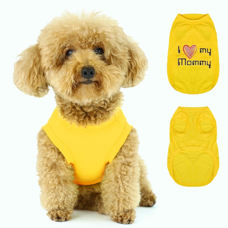 Expressive Pet Vest: Sleeveless Dog Shirt with 'I Love My Mommy' Slogan, Ideal for Chihuahuas, Poodles, Yorkies, and More - Adorable Design, Ultimate Comfort, Easy Maintenance! Yellow X-Small