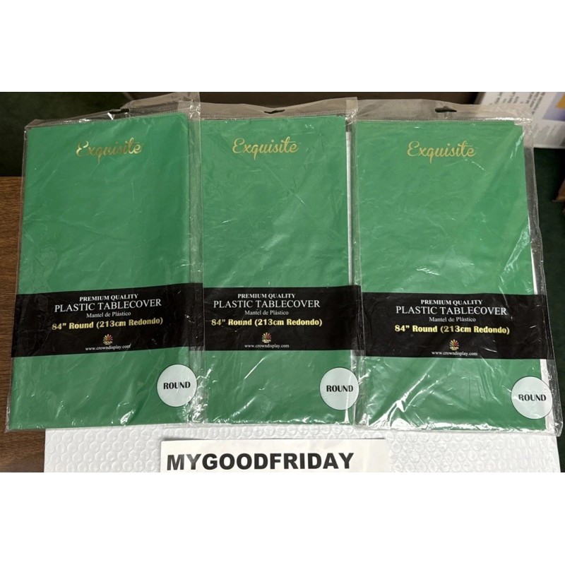 Exquisite 3Pack Premium Quality Disposable Plastic Party TableCover 84"Round Emerald Green