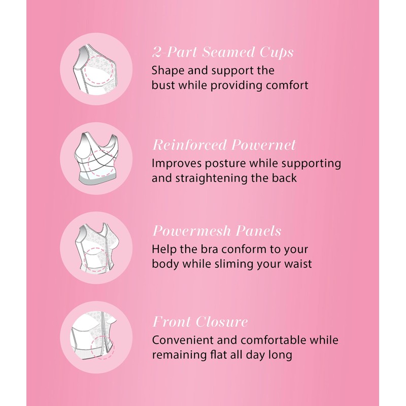• Posture Support This women's full figure bra is designed with supportive cups, power mesh panels, and a crisscross powernet design on the back to support your back, smooth your waist, and correct your posture.