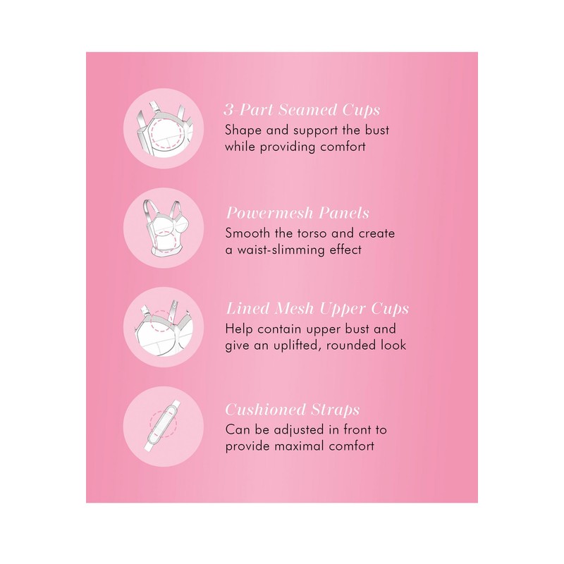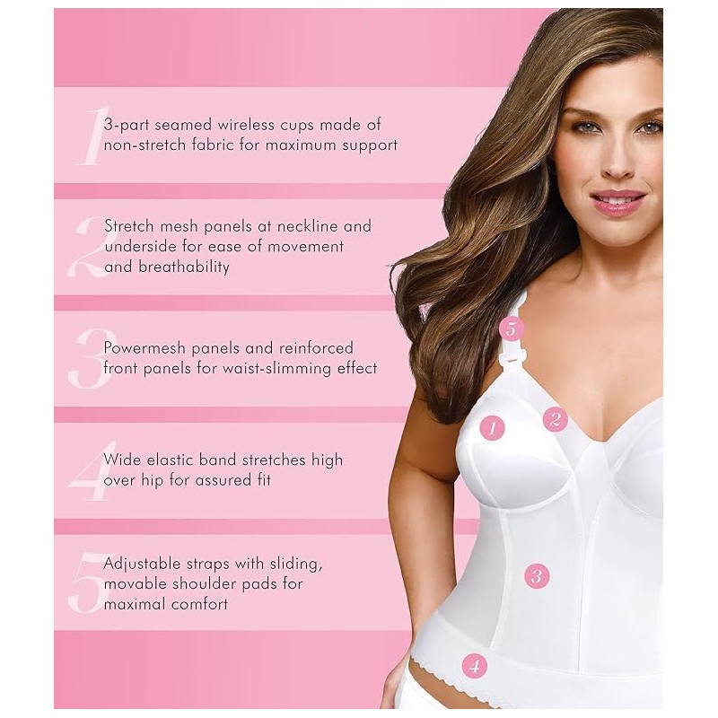 - POSTURE SUPPORT. This women's full-figure longline is designed with supportive 3-part seamed cups and power mesh waist-slimming panels to help support your back, smooth your waist and correct your posture.