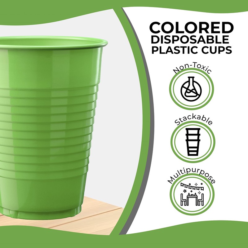 Exquisite Lime Disposable Plastic Cups - 100 Pack 12 Oz Plastic Cups - Colored Disposable Cups - Durable Party Cups - Plastic Disposable Drinking Cups - Bpa Free Plastic Cups For Party