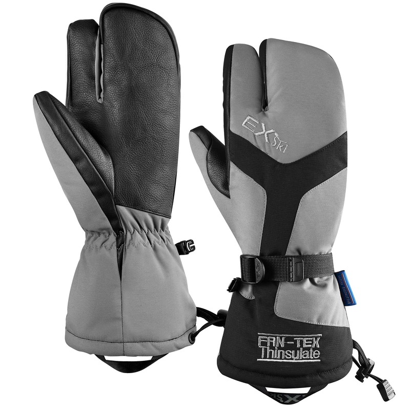 EXski Waterproof Winter 3-Finger Ski Gloves Warm Insulated Snow Mittens for Cold Weather Snowboard Snowmobile Grey X-Large