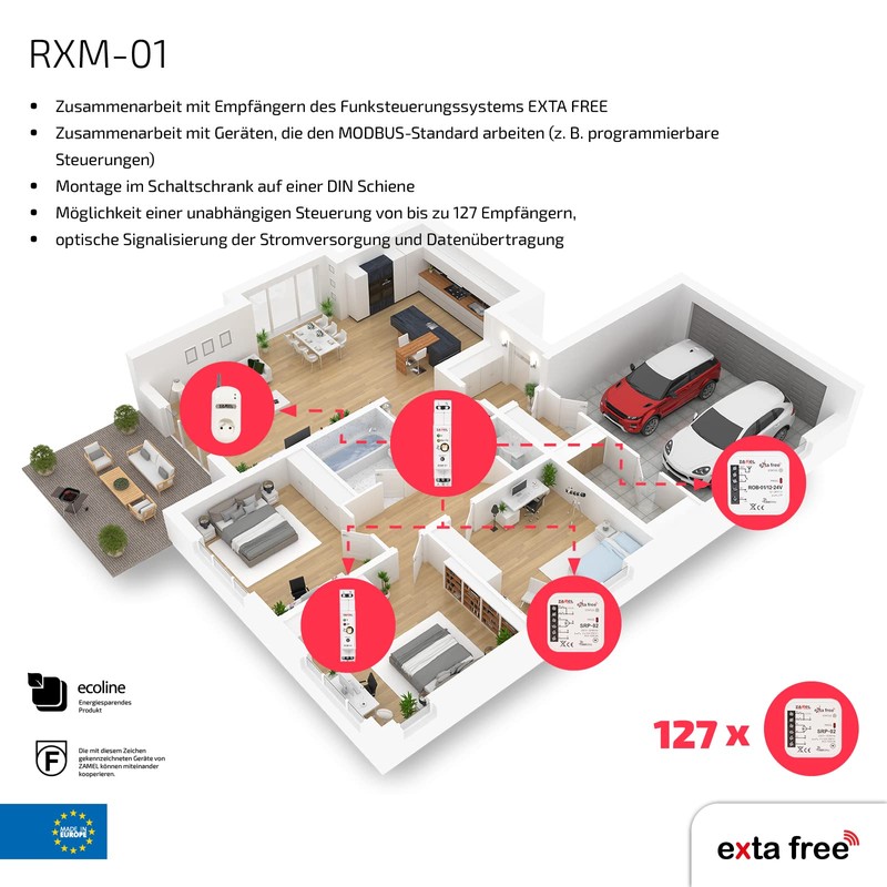- The RXM-01 modular translator is a device that works with the receivers of the EXTA FREE radio control system and is mounted on a DIN rail in an electrical control cabinet. It allows independent control of up to 127 receivers.