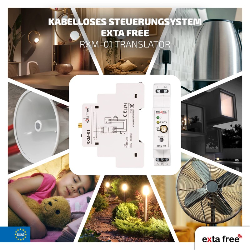 - The RXM-01 translator of the Exta Free system is an energy-saving device powered by 230V AC. The RS-485 RXM-01 translator has been designed to be adapted to continuous operation under voltage due to its low power consumption.