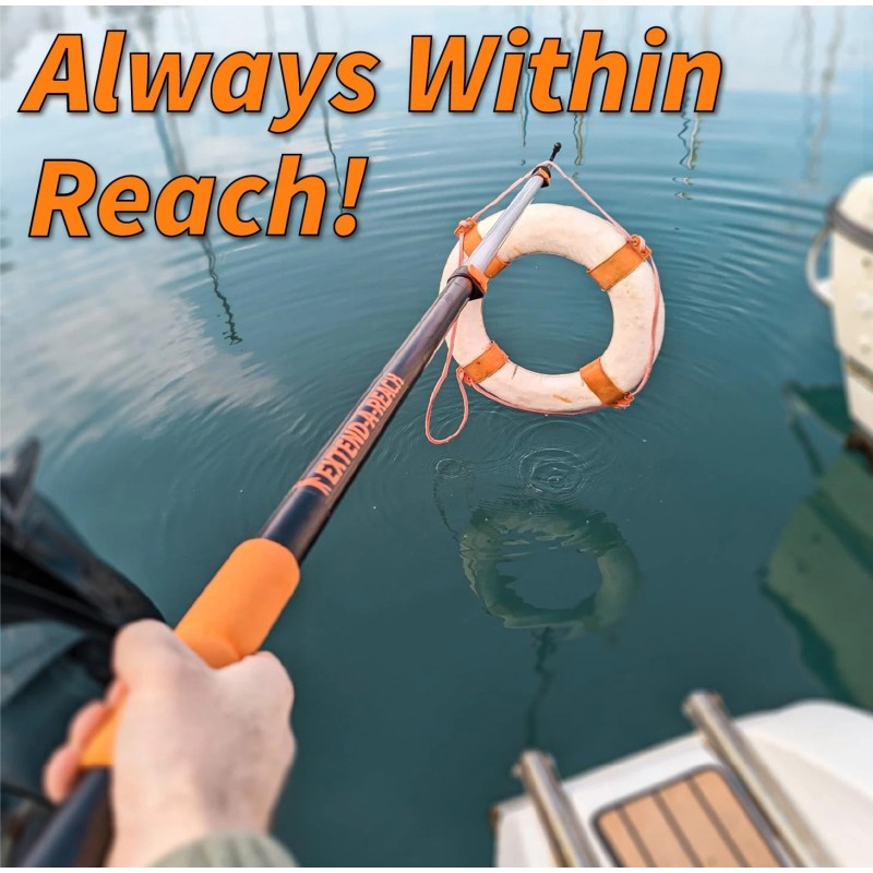 ALWAYS WITHIN REACH - This extension pole is designed to keep you always within reach, making docking and retrieving fallen equipment super easy. With its adjustable length and boat hook attachment, you can secure your boat safely without leaning over the edge or struggling with awkward angles. No worries if the pole falls in the water! Our bright orange, floating extension pole makes retrieval a breeze, saving you time and hassle.
