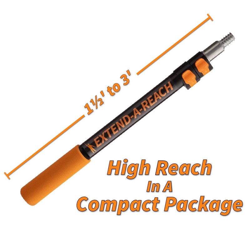 MULTIPURPOSE POLE WITH UNIVERSAL THREAD - The EXTEND-A-REACH universal attachment point fits nearly all household accessories: utility hooks, boat brushes, paint roller, squeegee, cobweb duster, ceiling fan duster, feather duster, light bulb changer, and more. A surprisingly short 1.5 ft retracted pole length comfortably fits in your boat, car trunk for easy transportation and is easy to store.