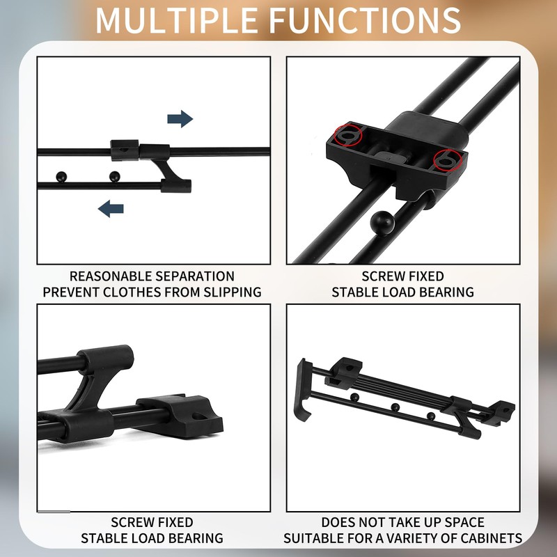 ✔ Wardrobe rail has a retractable design and the stretched length is 416 mm, which can maximise the use of space, save space and make the wardrobe more tidy.