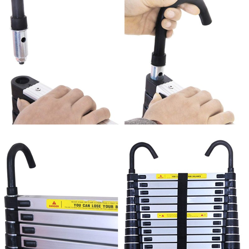 - Quick Adjustments: This 15 step telescopic ladder features independent locking pins on rungs 2 to 14. Each step can be quickly adjusted and the ladder can be extended or shortened for various jobs.