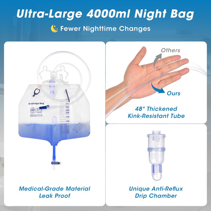- 1 High-Capacity Overnight Drainage Bag (4000mL / 136 oz)