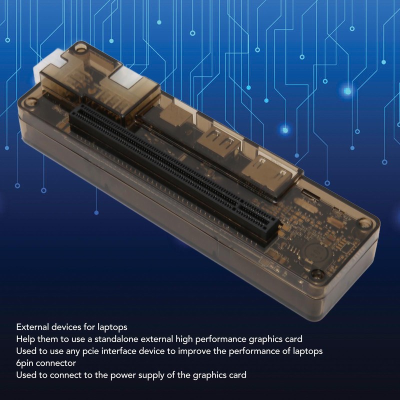 1、LAPTOP EXTERNAL DEVICES: MINI PCIE external graphics card dock is an external device for laptops that helps them to use a standalone external high performance graphics card. 2、PCIE INTERFACE: Laptop external independent video card dock can be used to improve the performance of your laptop by using any pcie interface device. 3、6PIN 8PIN CONNECTOR: External video card dock comes with a 6pin connector for connecting power to the graphics card and an 8pin connector for connecting an EXP GDC power supply. 4、HIGH PERFORMANCE: Laptop external graphics card dock can access most graphics cards to play games, allowing them to play huge games that require high performance graphics cards. 5、APPLICABLE: External graphics card dock is suitable for industrial applications such as engineering measurement, data acquisition, server debugging, GPU computing, etc.