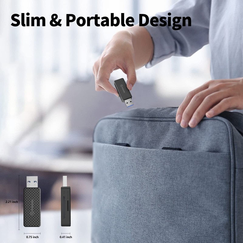 - 【Easy to Carry】The mini size of the memory card reader is 56 x 19 x 10.5mm. You can easily carry it in your bag or pocket when traveling or shooting. Thumb-sized, portable for business.