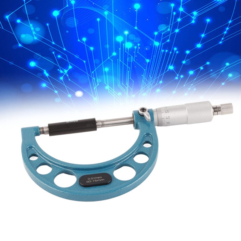 External Micrometer Stainless Steel High Accuracy Outside Micrometer Thickness Gauge with Key 0.01 mm External Micrometer Tool for Precise Measuring of Material Thicknesses (50-75 mm)