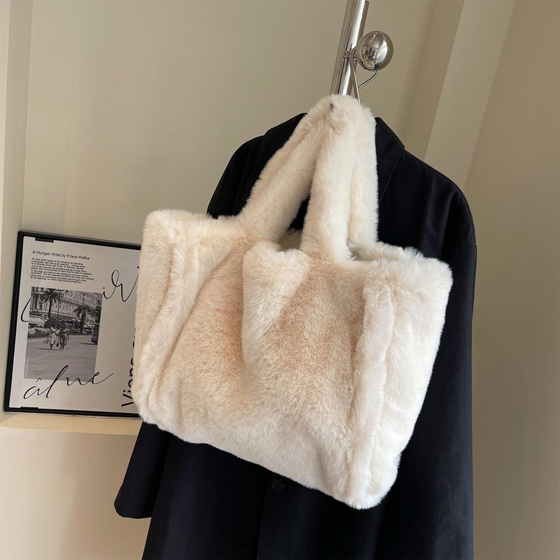 - 🌎 Size: This fuzzy purse size is 44*14*30cm/17.32*5.51*11.81in. large size, enough capacity to store your pad, mobile phone, wallet, headphones, keys, cosmetics and other essential items when going out.