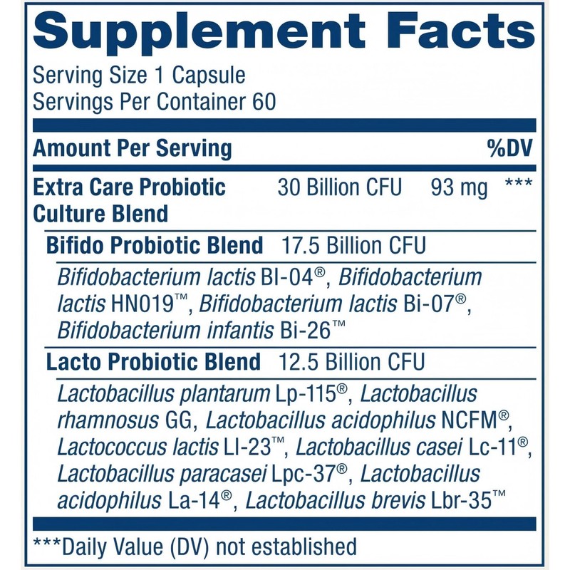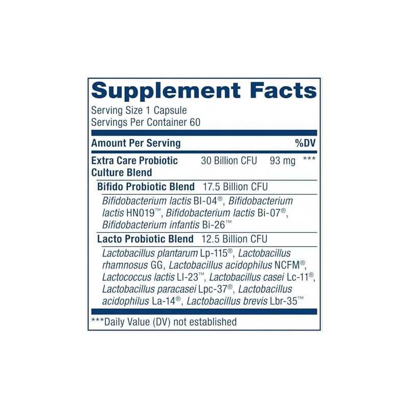 Extra Care π«ππππππππ π·ππππππππ Daily formula,30 Billion πͺππΌβ Supports π«ππππππππ, π°πππππ πππ πΉππππππππππβ Dairy,Soy & Gluten-Free -1 Pack(60 Count)