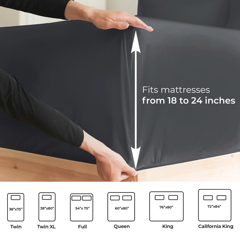 - OTHER DARK GREY TWIN SHEETS OFTEN PULL LOOSE FROM THE MATTRESS while you’re sleeping and are a struggle to get on your bed, even when you buy the right size. At CGK Unlimited, we’ve designed our dark grey twin bed sheets with extra deep pockets to easily fit mattresses 18”–24” deep, so it’s a cinch to put on the bed – even with a mattress topper! our deep fitted dark grey sheets twin also feature elastic all the way around its edges to hug your mattress securely – no more balled up sheets!