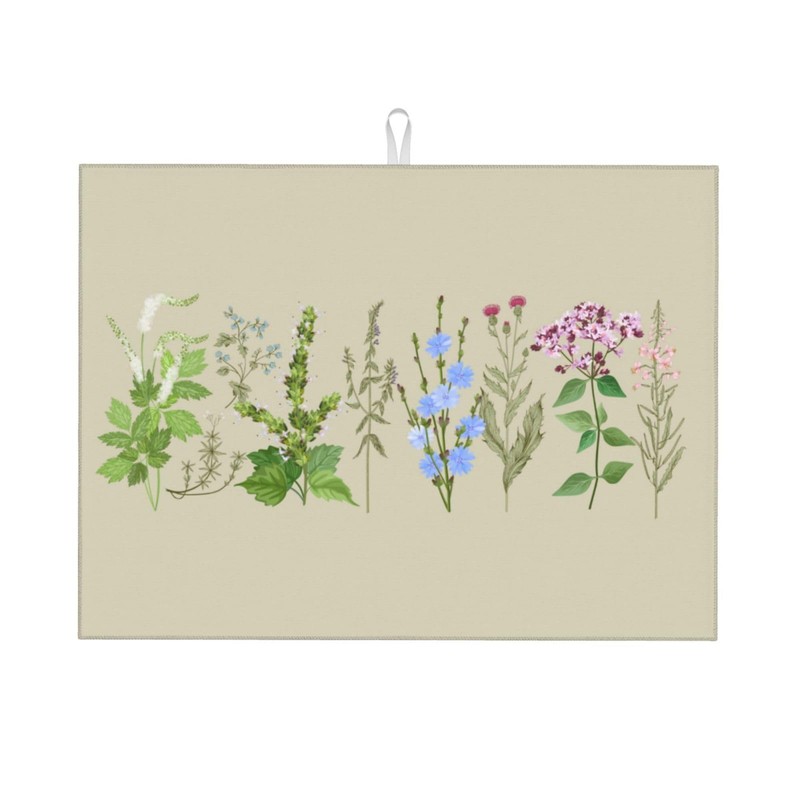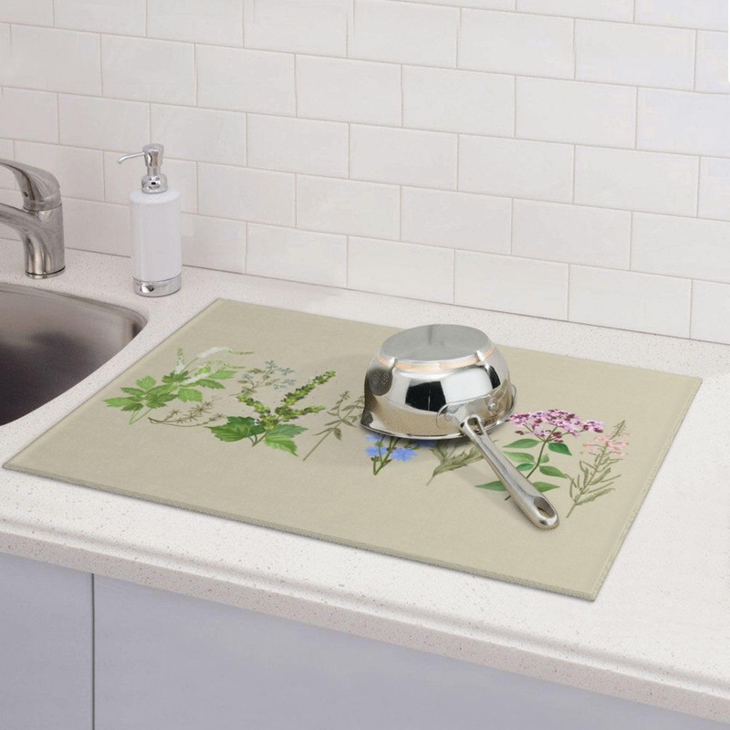 Extra Large Flower Herbs Dish Drying Mat, 18x24 Inch Non Slip Kitchen Counter Mat, Thick Absorbent Microfiber Pad for Dishes, Sink