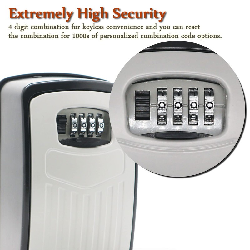 - [ Hidden Security ] The outdoor key box is a combination of 4 digitally adjustable metal wheel locks,which can provides 10000 combination codes, you can reset your code anytime. 【NOTE】 Do not forget your password, or you have no way to open the key box.