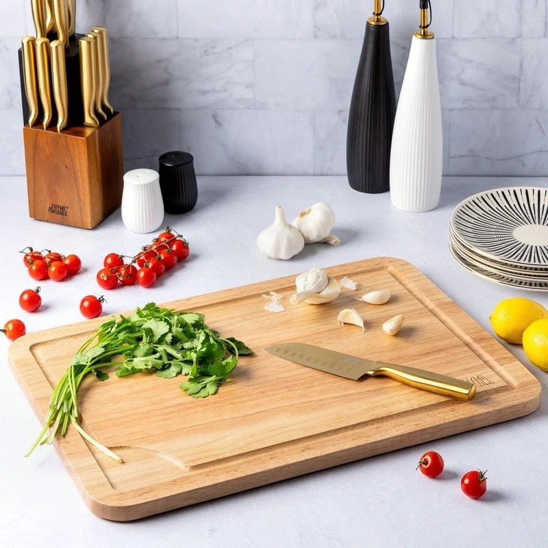 Extra Large Rubberwood Cutting Board Juice Well Non-Slip Feet Blade Friendly New