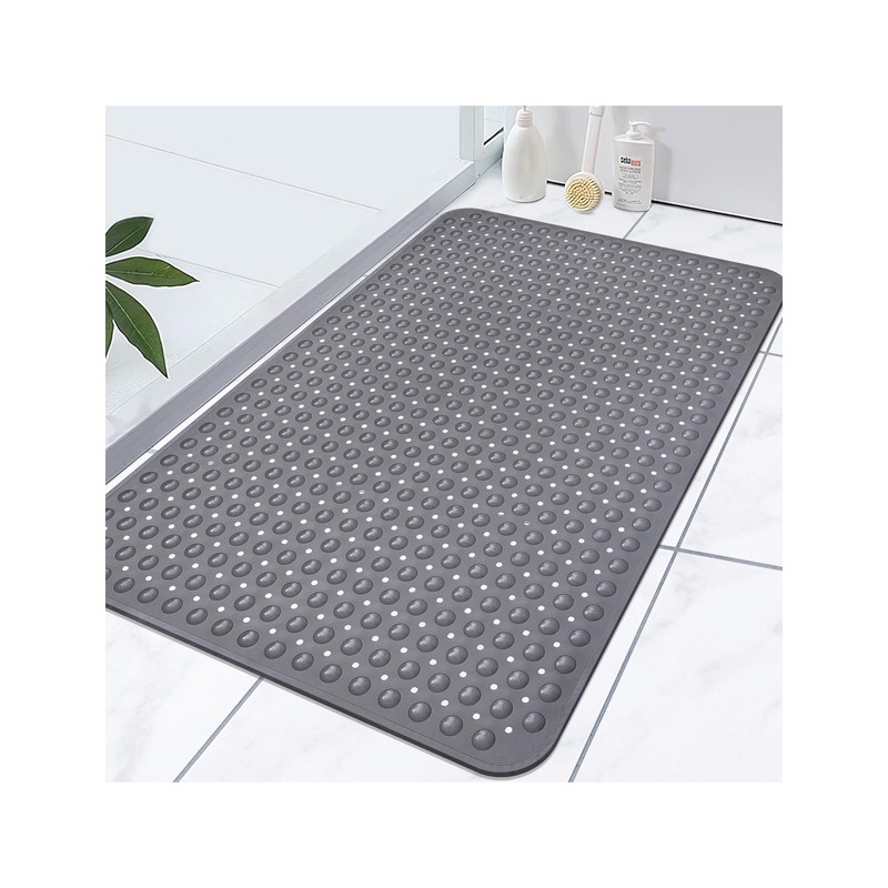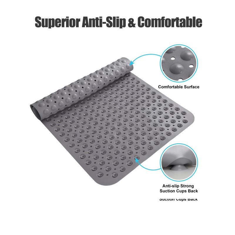 - Superior Anti-Slip Safety & Comfortable: 330+ suction cups provide superior grip on wet floors, making it a perfect non slip shower mat. TPE material is softer than rubber, non-slip footing even when wet. NOTE: Secure our full coverage shower bath mat to just about any smooth, untextured shower stall or bath tub surface.