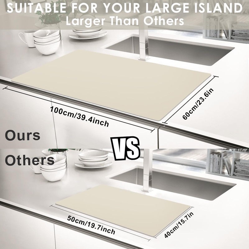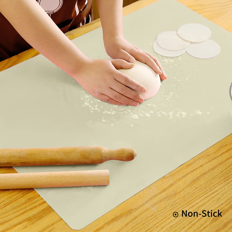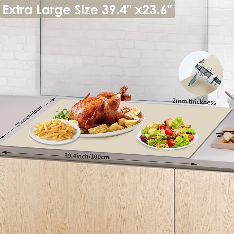 • 💕【Larger Size&High quality】Our 39.4x23.6inch (100cmX60cm )extra large beige silicone mat, is big enough to cover the whole table , protecting table and countertop for small kitchen appliances .Our silicone mat is made of high quality food-grade silicone,environmentally friendly,kids friendly and BPA free.Our 2MM thick silicone mats are much thicker than other countertop protector mat,equivalent to the thickness of a one-dollar coin.