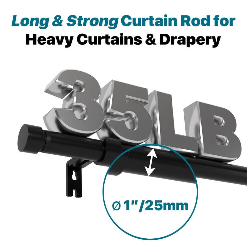 - 【Heavy Duty and Strong+】Our 1 inch curtain rod can support a variety of heavy curtains and drapes with a max weight of 35 LBS, also 4 upgraded thicker brackets are included in this curtain rod set.