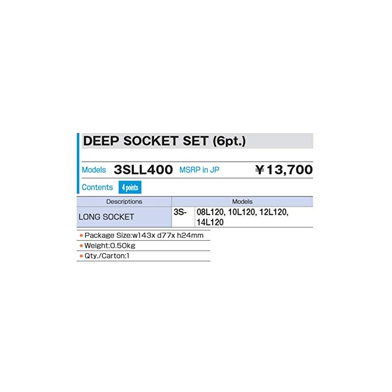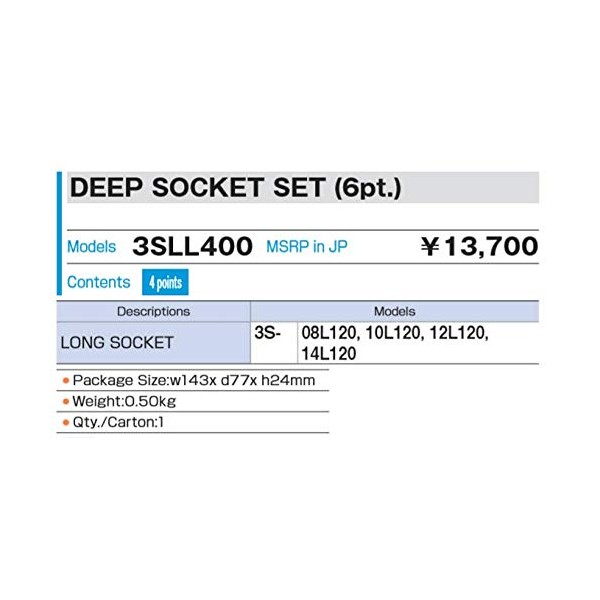 • Inset corner (in mm): 9.5 set includes: (piece): 4 socket Includes: 3S – 08l12010l12012l12014l120 Weight (kg): 0.5