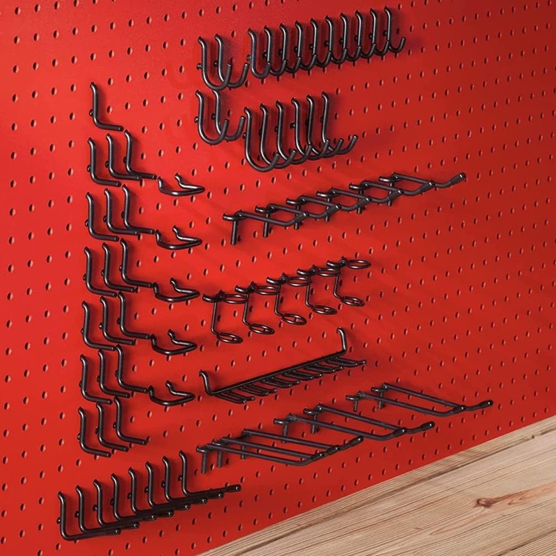 - Powder coated matte finish provides a stylish look. Corrosion resistant black hooks are perfect for peg board use in your garage, craft room, kitchen, laundry, pantry, tool shed or wherever you need more storage or organization.