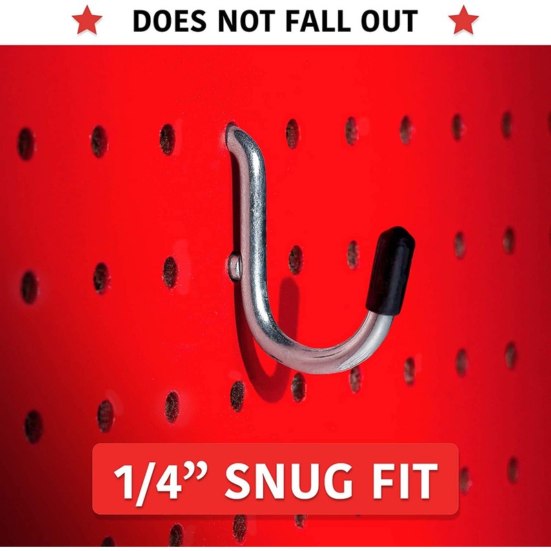 - HOOKS THAT DON'T FALL OUT. Up to 3x thick as competing products. Our 1/4 Inch Pegboard Attachments have a 0.21 inch thick diameter to fit your 1/4'' holed pegboard securely.