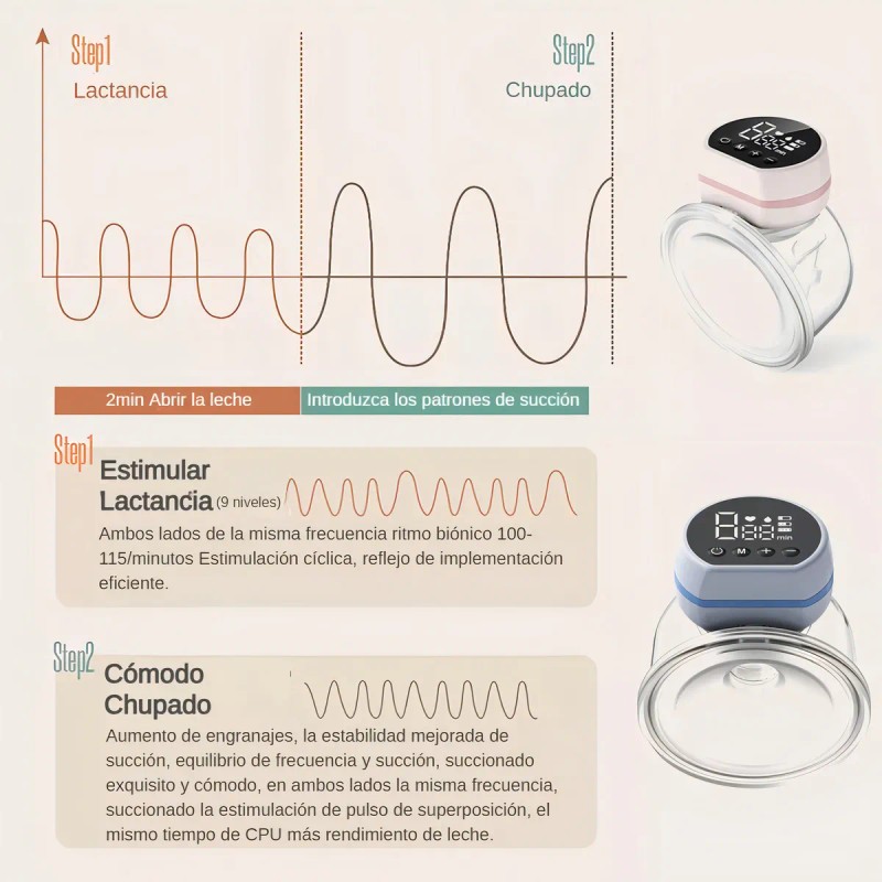 Extractor de Leche Eléctrico Portátil Gllai Silencioso Inalámbrico con 9 Niveles Rosa