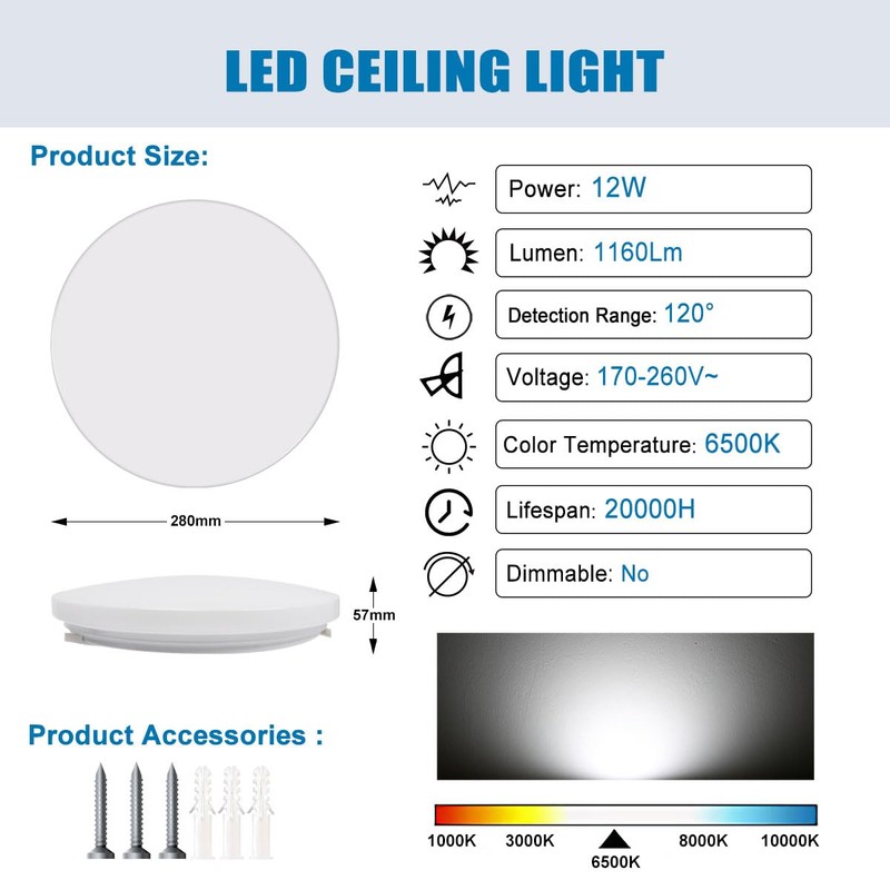 - 【High Quality & Energy Saving】: 12W LED ceiling light can replace 81W traditional lights, saving more than 85% of electricity bills. And it has a lifespan of up to 20,000 hours, which will reduce costs by reducing the frequency of replacement.