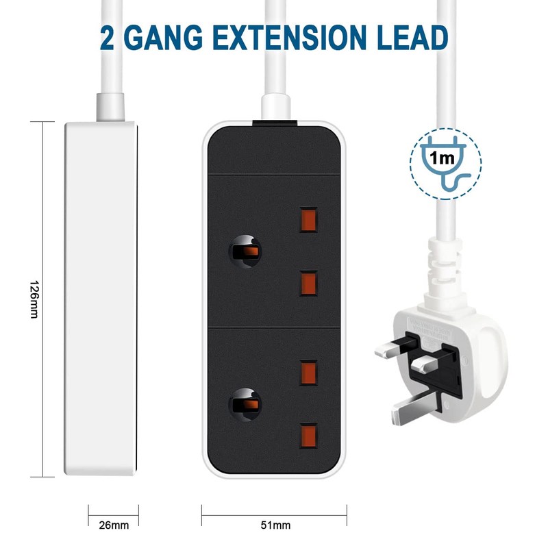 - 【1M Length Extension Lead】This extension lead features with 1M length cable, ideal for extend the length for other extension lead which the cable is not long enough to charging multiple appliances from distance in the office or living room.