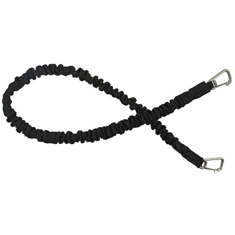 - Features a durable nylon sleeve and two 2-1/4" x 1-3/8" stainless steel clips on each bungee