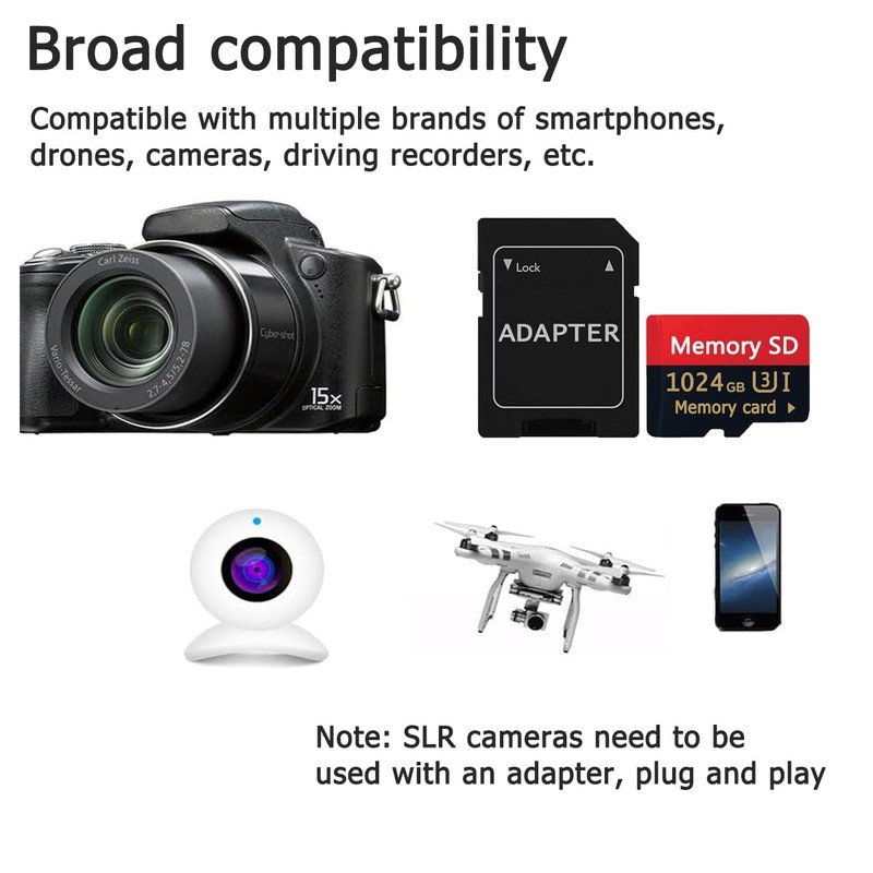 - Capacity of 1024GB: La scheda di memoria da 1024GB aggiunge capacità extra al tuo dispositivo per soddisfare le tue esigenze di vita quotidiana e di lavoro. Gli utenti possono trasferire facilmente foto, musica, video e altri dati digitali, risparmia molto tempo e ti semplifica la vita