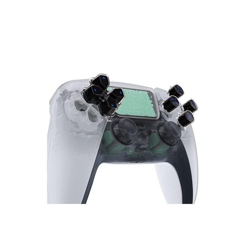 eXtremeRate Replacement Custom Dpad Action Buttons Three-Tone Black & Clear with Blue Redesigned Symbols D-pad Face Buttons Compatible with ps5 Controller