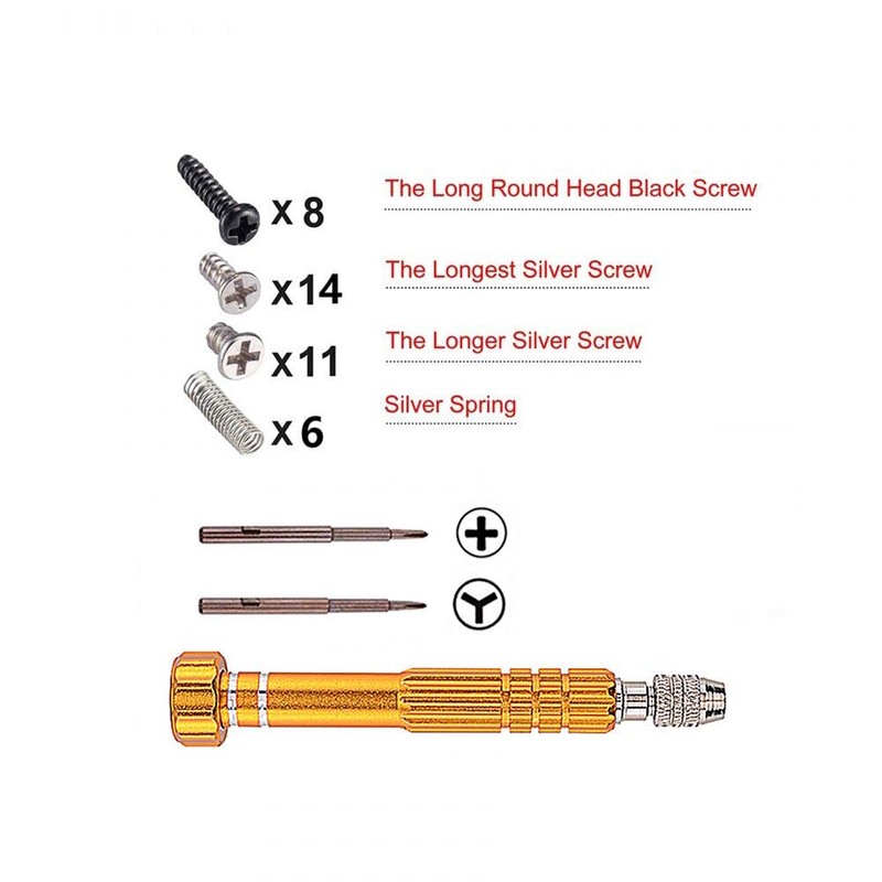 • The package includes a replacement Joy-Con case for Nintendo Switch (electronics parts not included), 8 ABXY buttons, PH00, Y00 driver set and spare screws