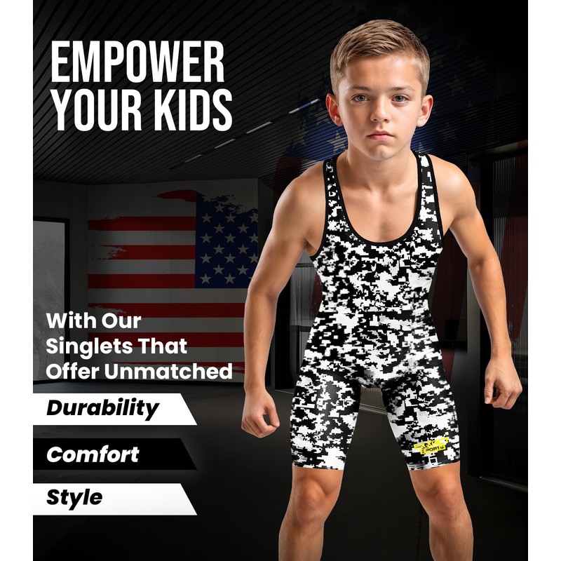 - Premium Sublimation Designs: With stunning digital camo colors, our singlets make a bold statement. Our sublimation prints will never crack, peel, fade, or irritate your child's skin. Available in a variety of colors and sizes, our singlet wrestling boys allow every child to express their unique style while showing off their team spirit. They are machine washable and easy to care for, so kids will always look their best at practice and competition.