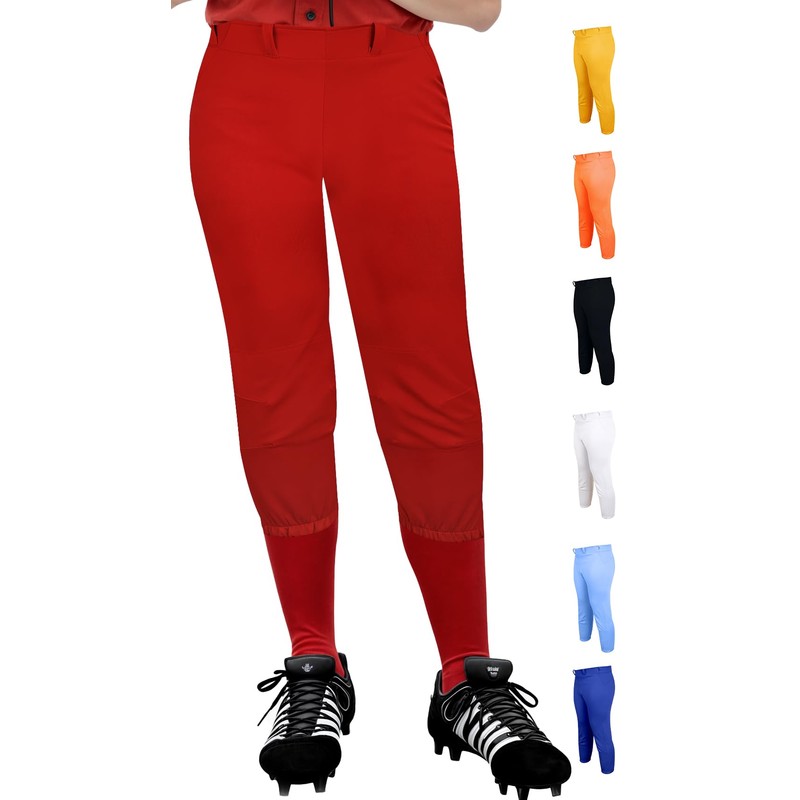 - Confidence On and Off the Diamond: Stand out on the diamond with our softball pants girls. Elastic leg openings right below the knees offer a secure fit and freedom of movement, allowing you to perform and look your best.