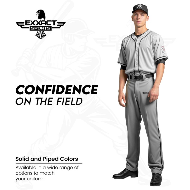 Exxact Sports Home Run Men's Baseball Pants Without Piping - Full-Length, Semi-Relaxed Fit, Open-Bottom Adult Baseball Pants - (AXL, Grey)