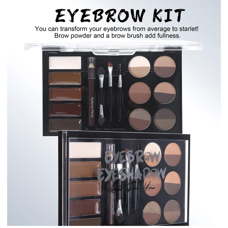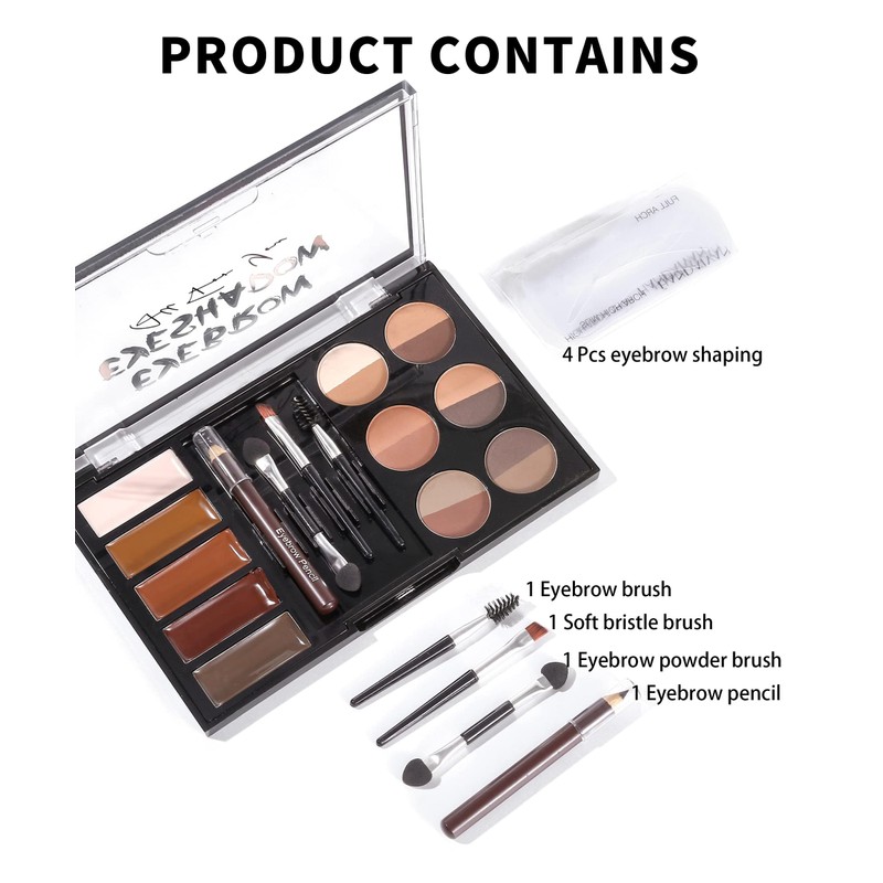 - 【Easy & Convenient】You can have the beautiful brows you’ve always wanted! This eyebrow makeup kit contains everything you need to create the perfect eyebrows, made to be used by makeup beginners or professionals of all ages. This amazing brow set is like your own personal and portable brow bar that includes everything you need to define, fill and shape your brows, in one travel-friendly mirrored palette.