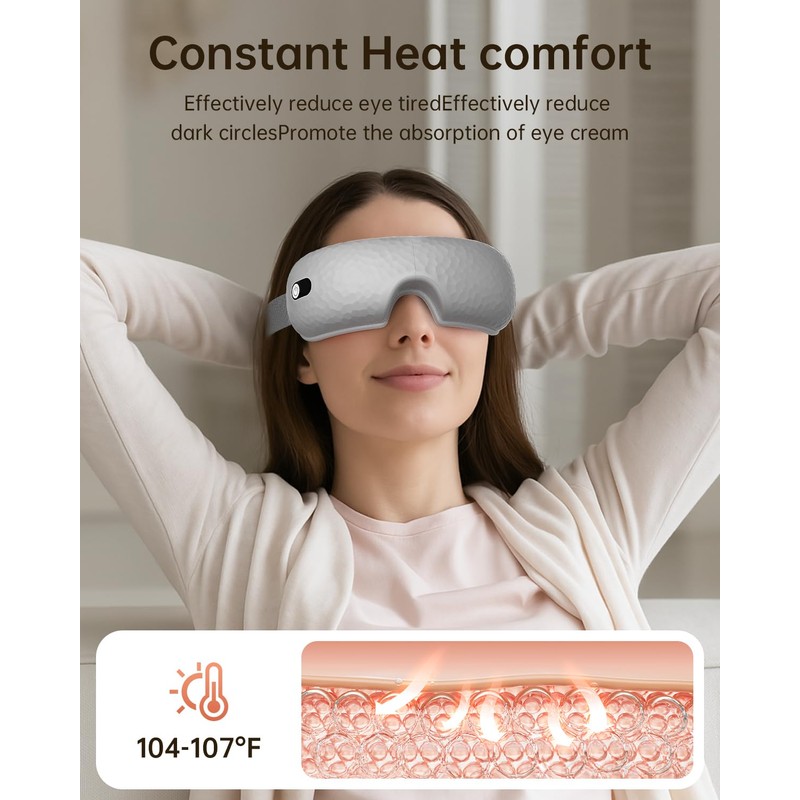 - [Intelligent Eye Massage]: Eye massager with heat provides a warm and comfortable temperature (100-108℉).It is not recommended for people with special eye conditions, such as those who have undergone eye surgery.