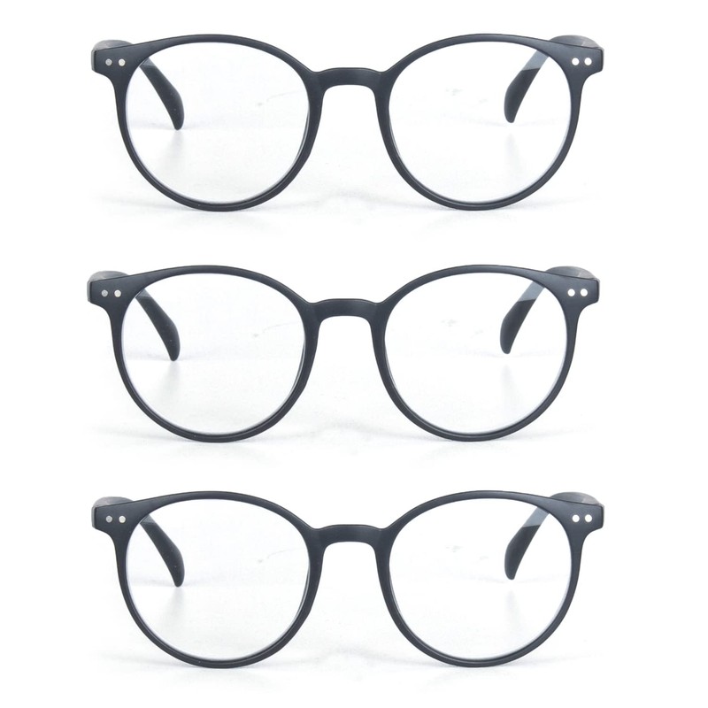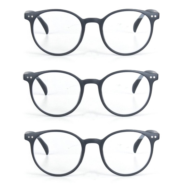 EYE ZOOM 3 Pack Retro Round Plastic Frame Reading Glasses for Men and Women, Black, +2.75