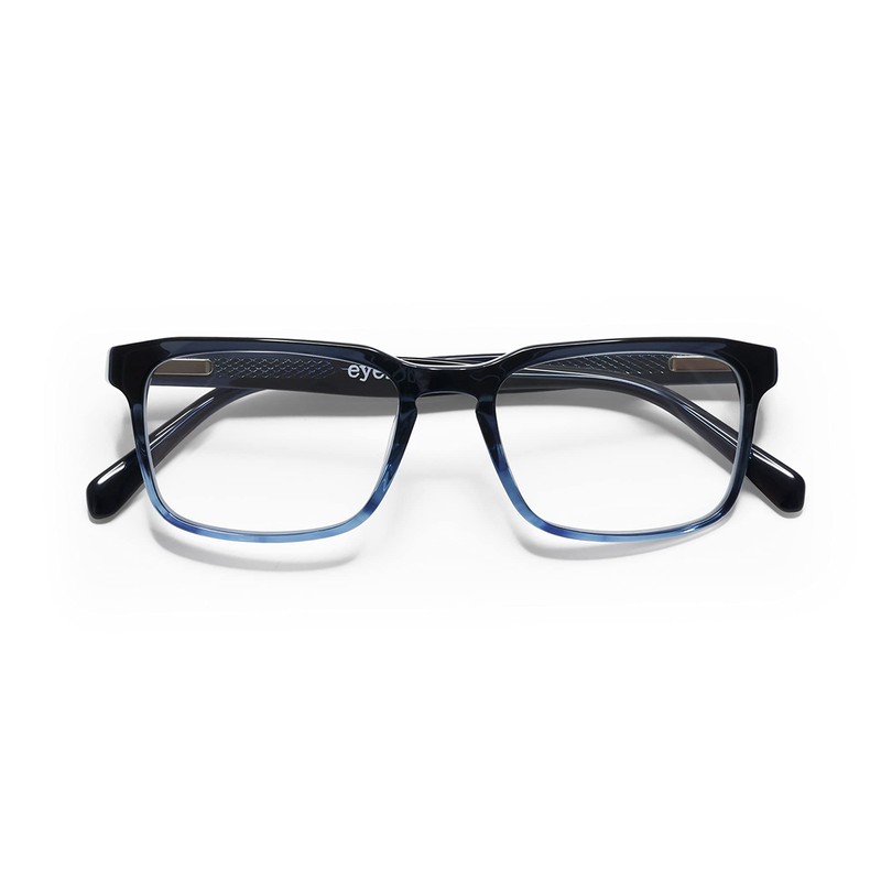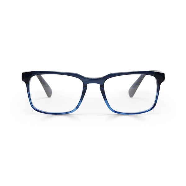 eyebobs Seymour Glass Premium Blue Light Reading Glasses for Women and Men | Rectangle Blue Light Blocking Computer Glasses | Navy Fade Front and Temples | 1.00