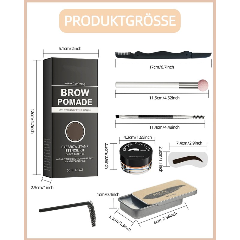 - Suitable for all hair tones and brow shapes – choose your favourite colour. The eyebrow stencil set is suitable for a variety of eyebrow shapes and face shapes. Sponge and eyebrow brush meet your different preferences, eyebrow trimmer and eyebrow fixing gel help you create very natural looking and defined eyebrows that beautifully frame your face and match all makeup looks