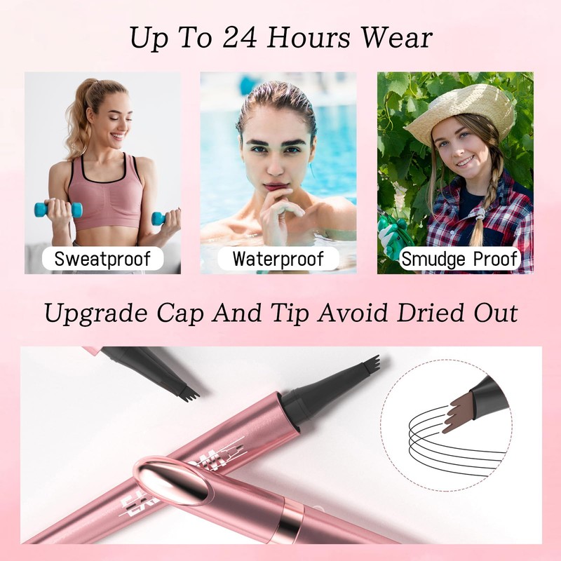 - 【4 Micro-Fork Tips Design】This liquid eyebrow pen features a unique quad-forked tip design, with each small tip finely polished to meticulously depict each eyebrow hair, easily fill in sparse areas, and outline a natural, smooth line. In addition, the tip of the eyebrow pencil is soft, ensuring that you can effortlessly and smoothly apply makeup, and avoid scratches that can occur with traditional eyebrow pencils.