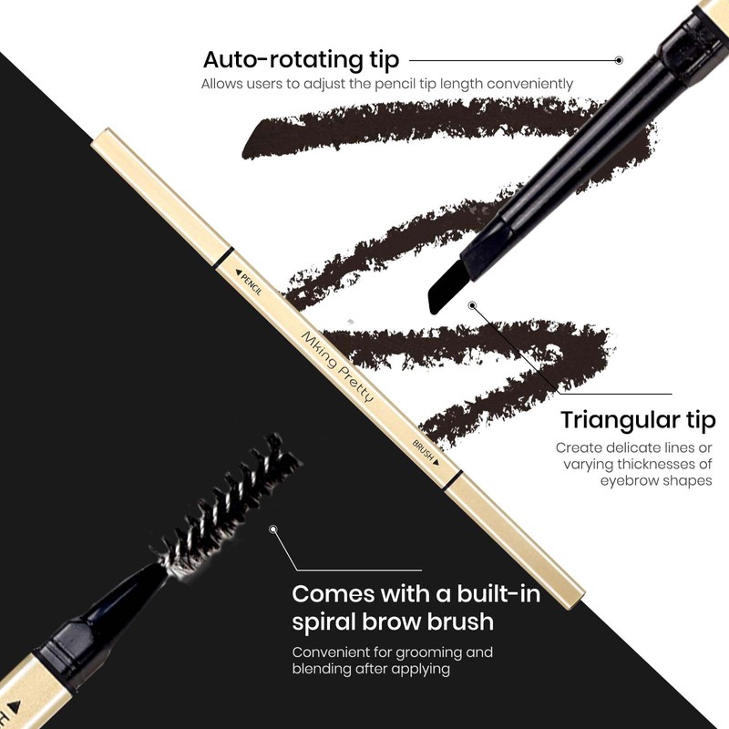 - Dual-Ended Design: Conveniently designed with a brow pencil on one end and a spoolie brush on the other for easy blending and grooming.