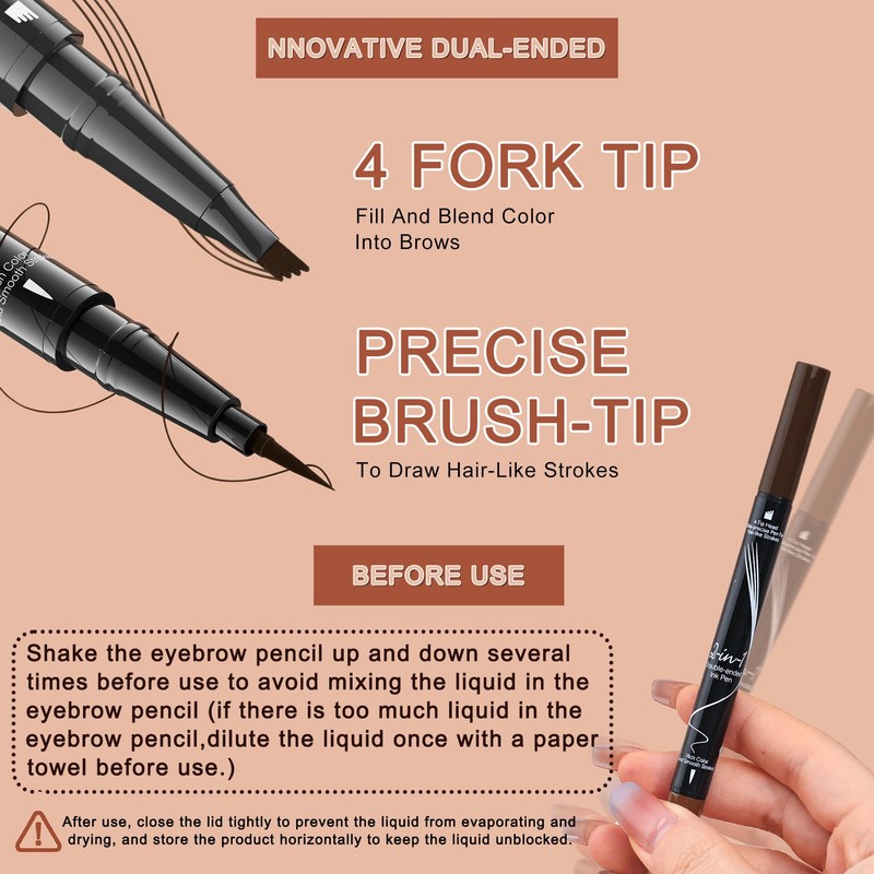 Product Description Experience the magic of flawless eyebrows with our 2-in-1 waterproof eyebrow pencil. This innovative pen combines a precise tip and micro pointed head to effortlessly create natural, plump eyebrows. The waterproof formula ensures that your makeup lasts all day, whether you're doing sports, in the rain or on special occasions.