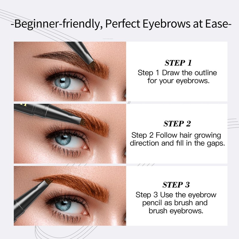 1. Carefully apply the pencil to draw the contour of the eyebrow; < br> 2. Colour inside evenly along the brow shape; < br> 3. Draw the last step for vibrant and natural-looking eyebrows.