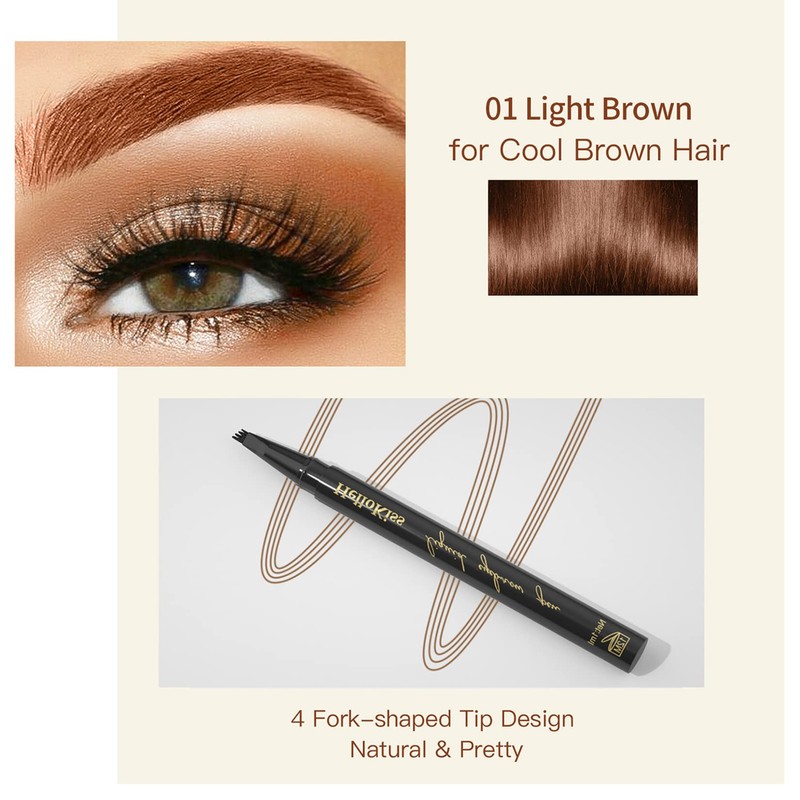 Eyebrow Pencil with 4 Fork Tips, Waterproof, Long-Lasting Eyebrow Pencil, Microblading Eyebrow Pencil with Micro Fork Tip Applicator, Eyebrow Pencil, Eyebrow Pen for Natural Eye Makeup (01)