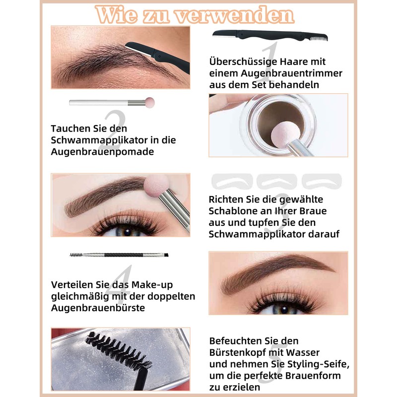 ② LONG LASTING & WATERPROOF & SMUFFE PROOF The eyebrow pomade is made of professional, cruelty free and advanced cosmetic materials, which is waterproof and smudge-proof whether you sweat heavily or last all night long, for 24 hours.
