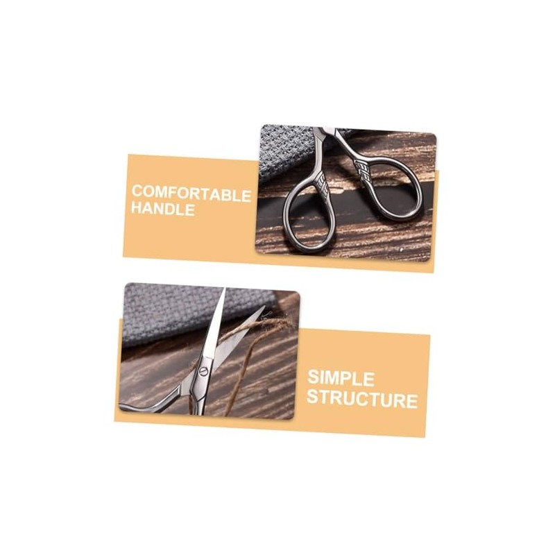 small mustache scissors Their compact size makes them for on-the-go use, and their safety design ensures that you won't accidentally hurt skin.scissors for eyebrow The round-tipped scissors are for trimming nose hairs, eyebrows, and beards with precision and ease.eyelash scissors This multi-functional grooming scissor is a must-have for anyone looking to keep checking their facial hair.face hair scissors Made from stainless steel, these scissors are durable and easy to clean